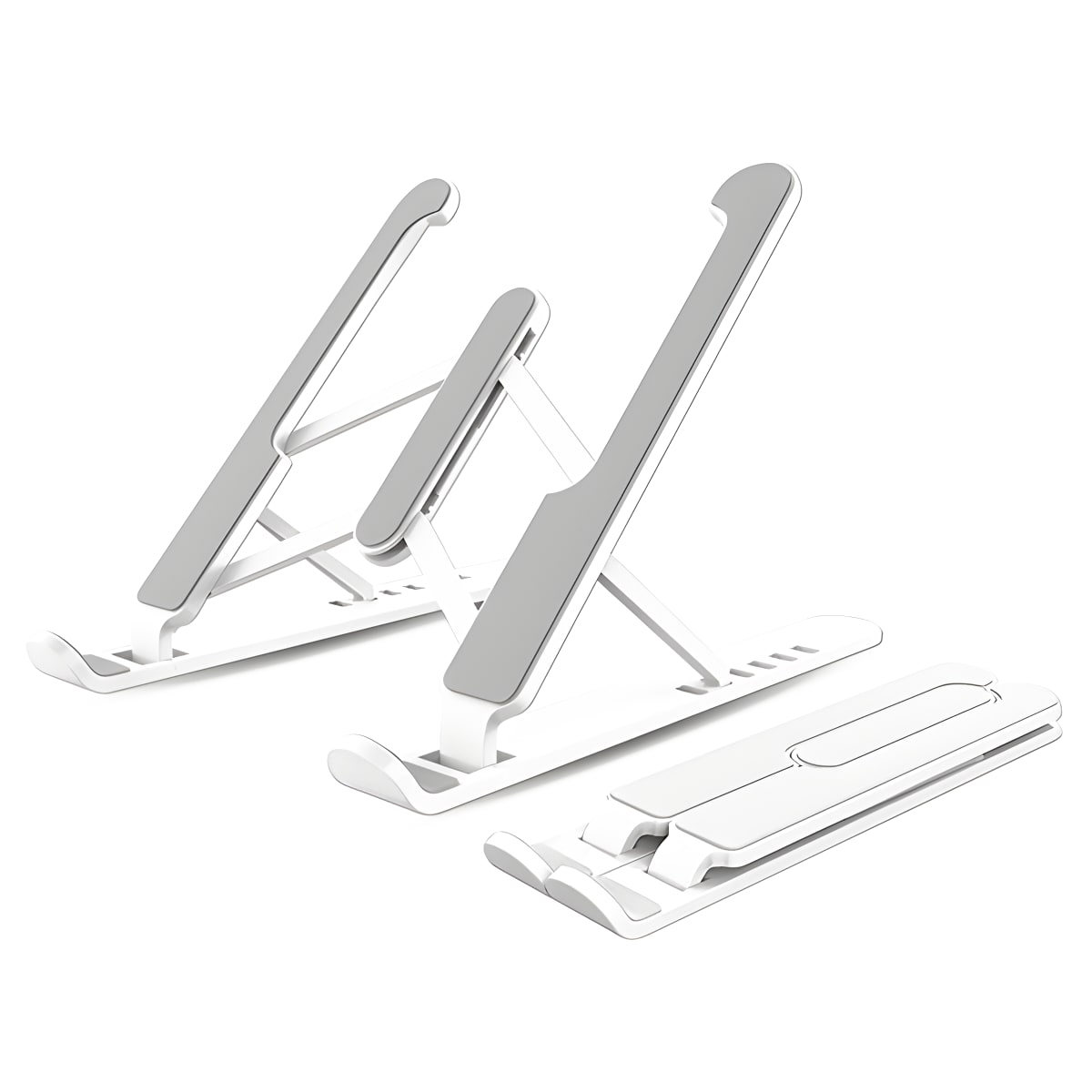 מעמד שולחני מתקפל למחשב נייד וטאבלט, עשוי ABS איכותי עם שילוב סיליקון למניעת החלקה ותזוזה. כולל 6 זוויות מתכווננות לשיפור תנוחת ישיבה אופטימ