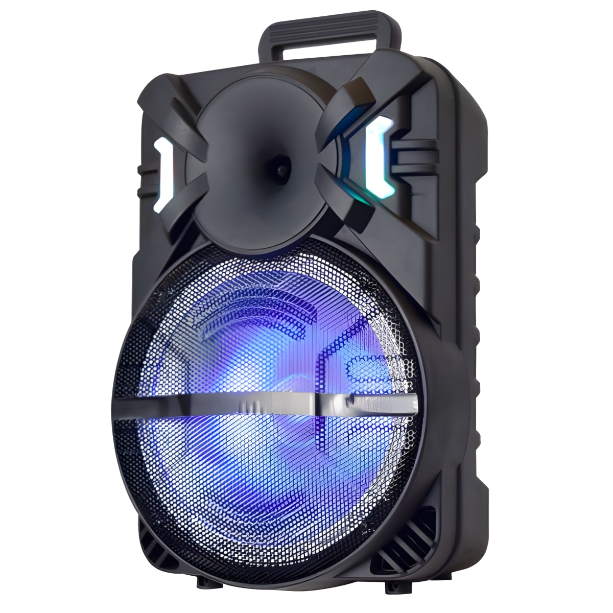 הרמקול קריוקי 12 אינץ' מגיע עם 2 מיקרופונים אלחוטיים ותאורת LED