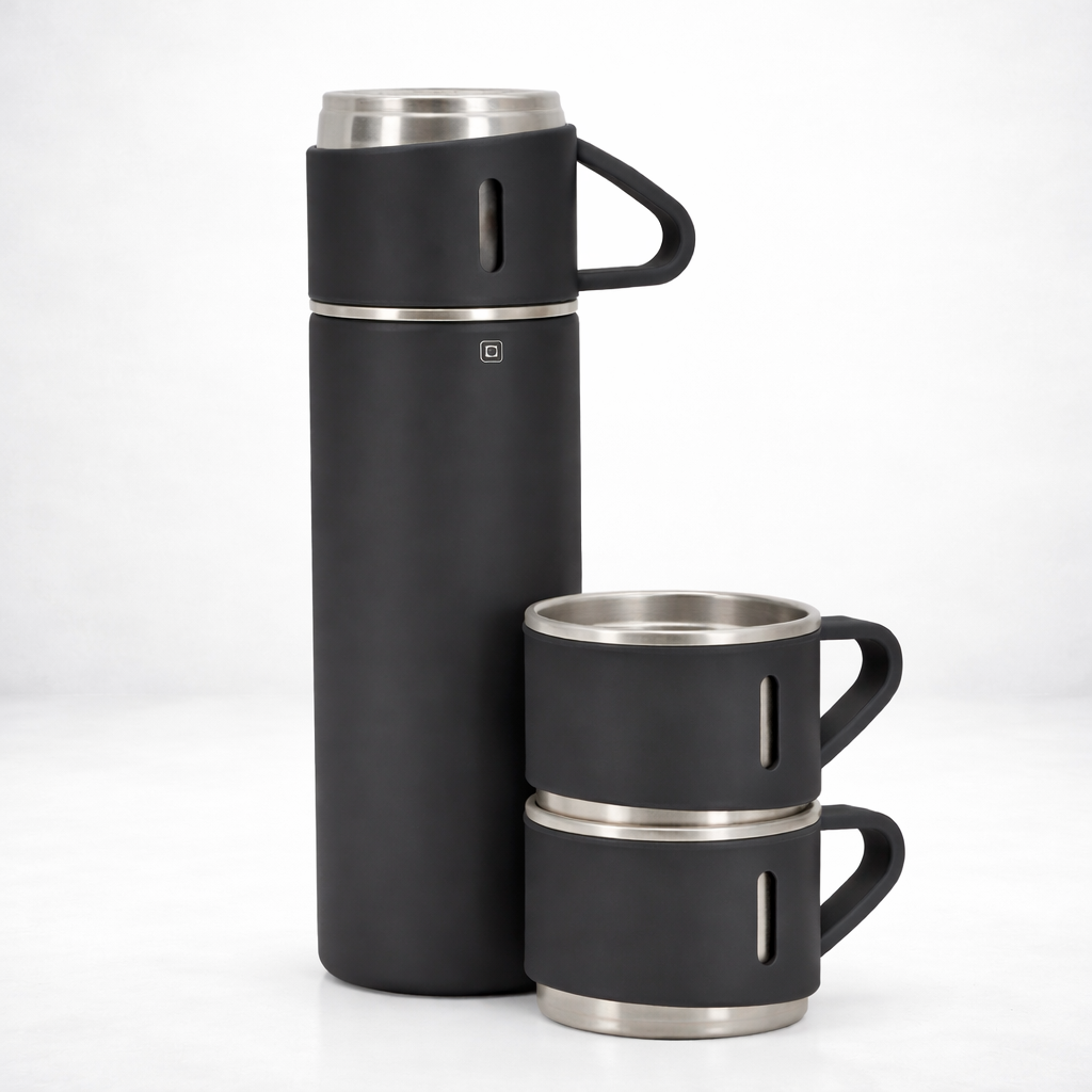 Premium 0.5L Thermos with 3 Cups in Gift Box
