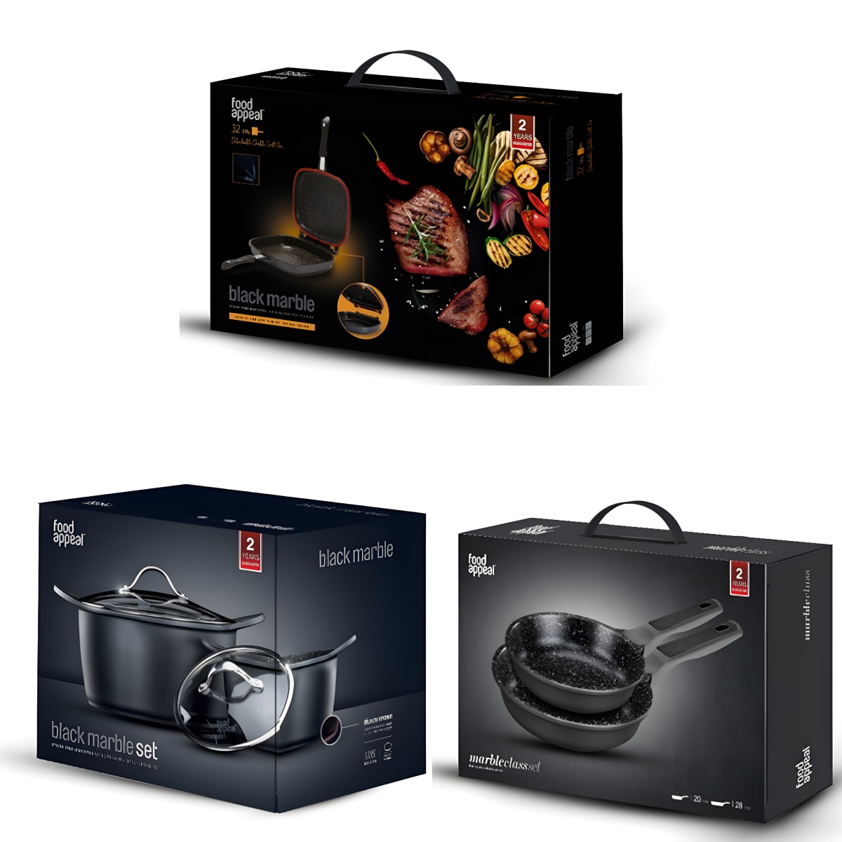 Create healthy meals effortlessly with our perfect cookware set. The set includes:32 cm detachable double grill pan made from black marbleSe