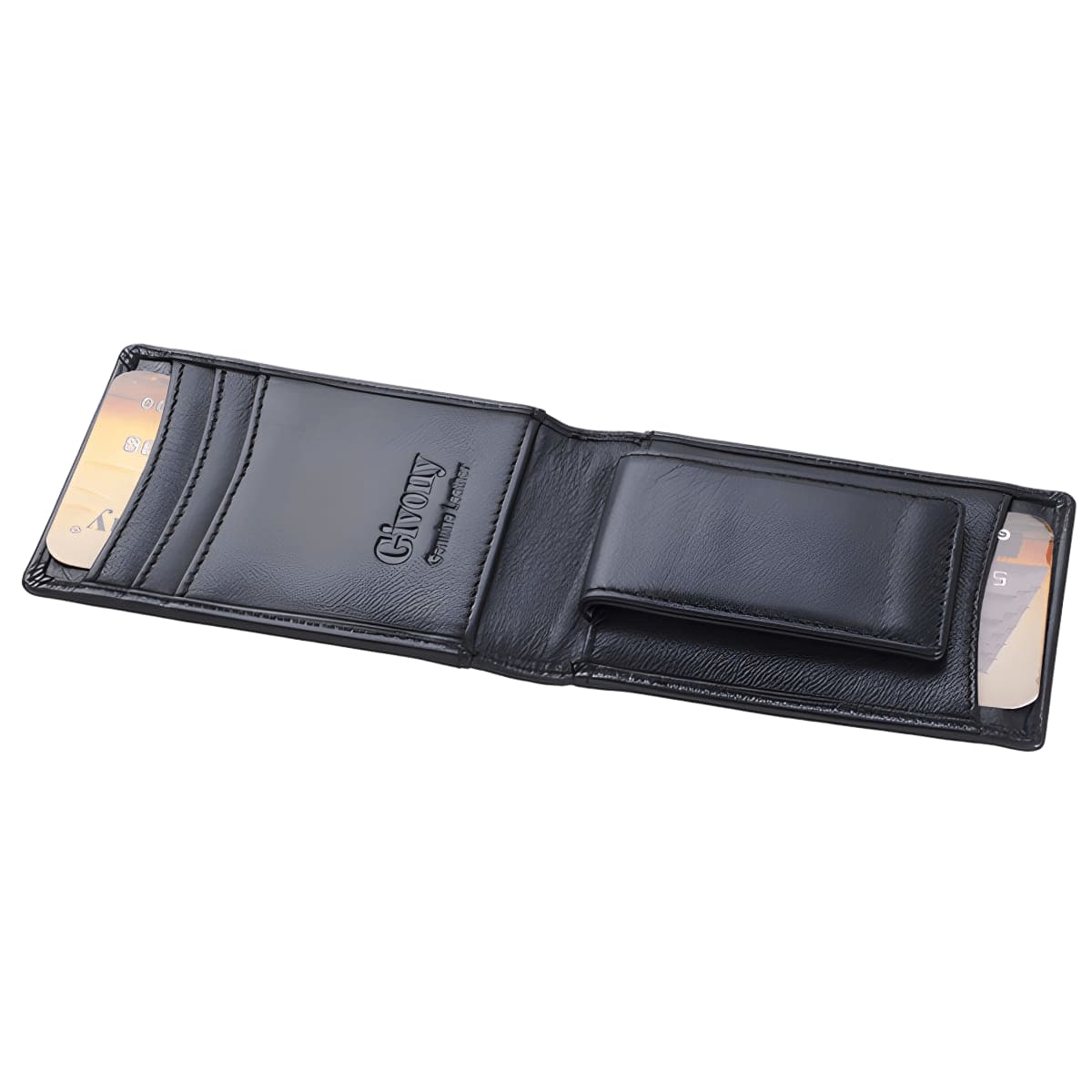 ארנק עור יוקרתי לגבר מבית גבעוני עם תופסן מגנטי לשטרות ו-4 תאים לכרטיסים. כולל 2 תאים מוסתרים ו-2 תאים חיצוניים. מידות: 10x7 ס"מ. סוגי העור
