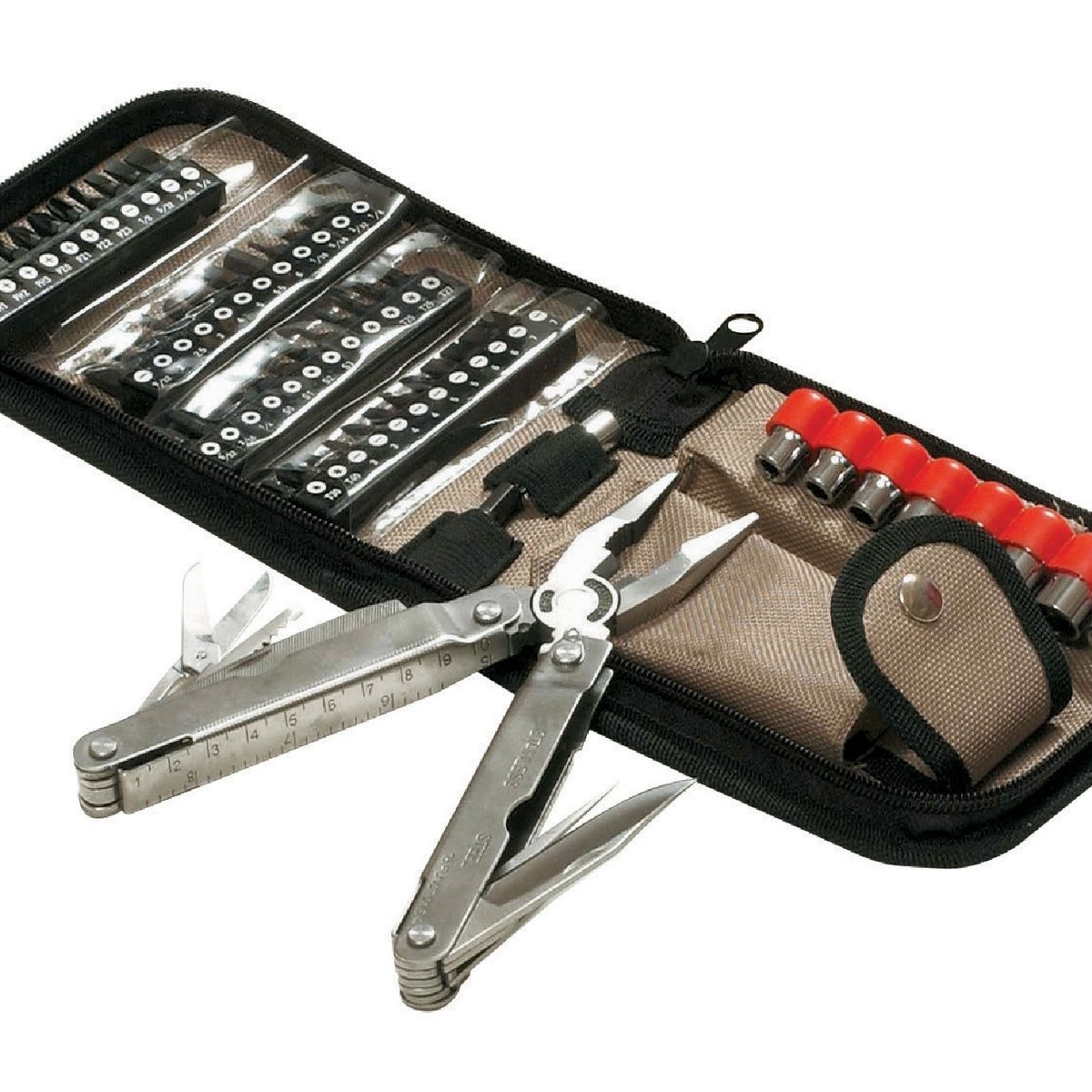 Discover the Premium Metallic Leatherman featuring a case, bits, and sockets. This tool offers perfect durability and reliability for everyd
