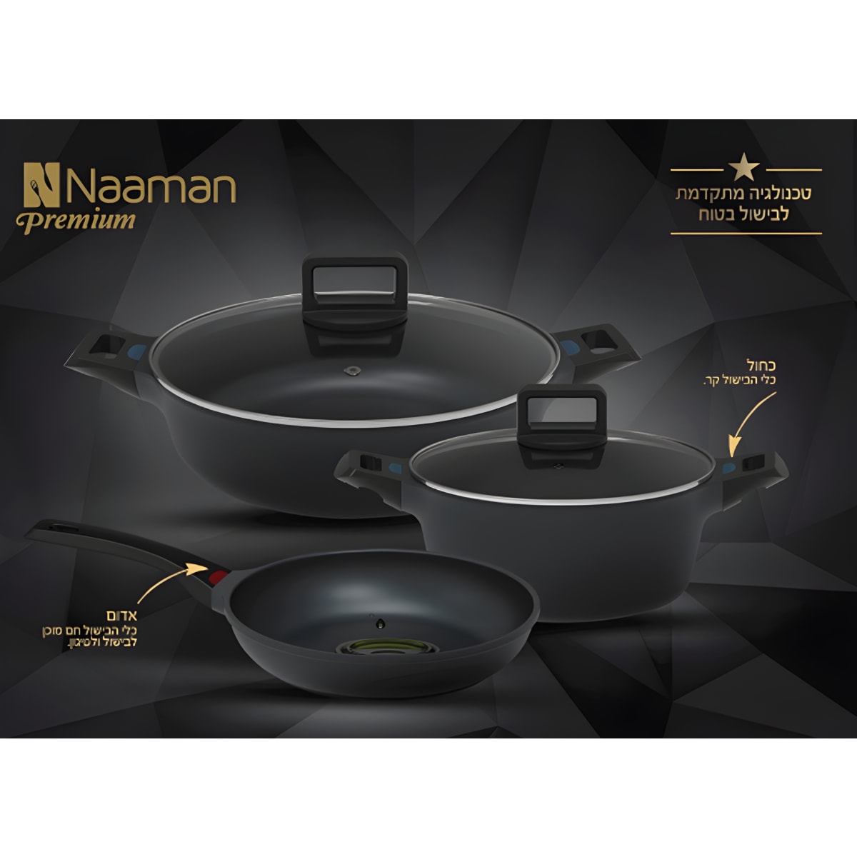 • ידיות נוחות לאחיזה ובטיחות עם כל סוגי הכיריים, כולל אינדוקציה.