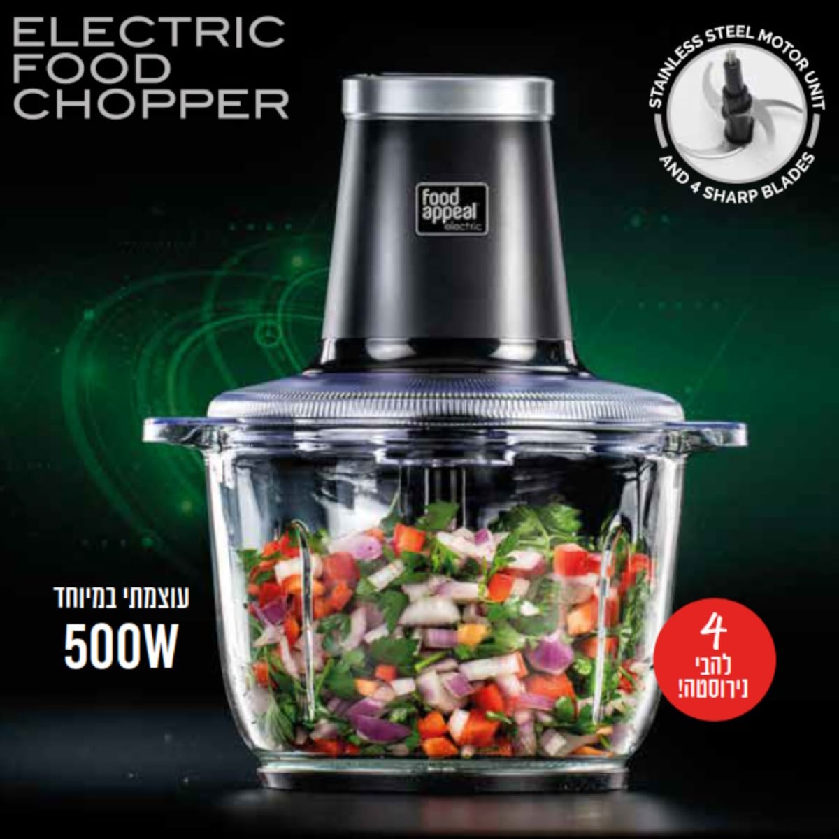 קוצץ מזון מקצועי עם קערה 2 ליטר מבית פוד אפיל