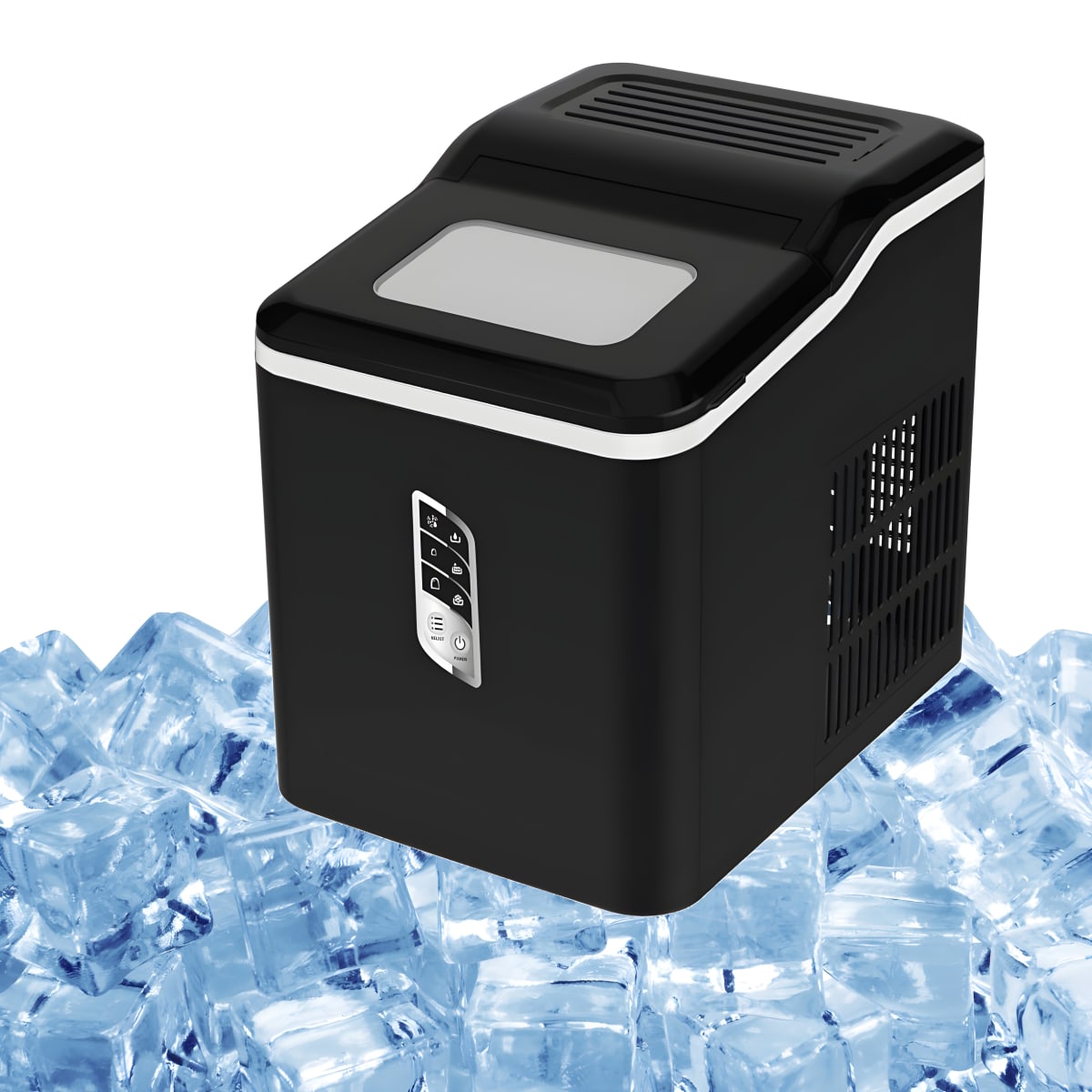 המכונה המושלמת ליצירת קרח מהירה, חזקה ועם ניקוי אוטומטי. מופעלת ב-120W, כוללת מיכל 1.5 ליטר ולוח בקרה עם נורות LED. עיצוב עם מכסה שקוף וסל ק