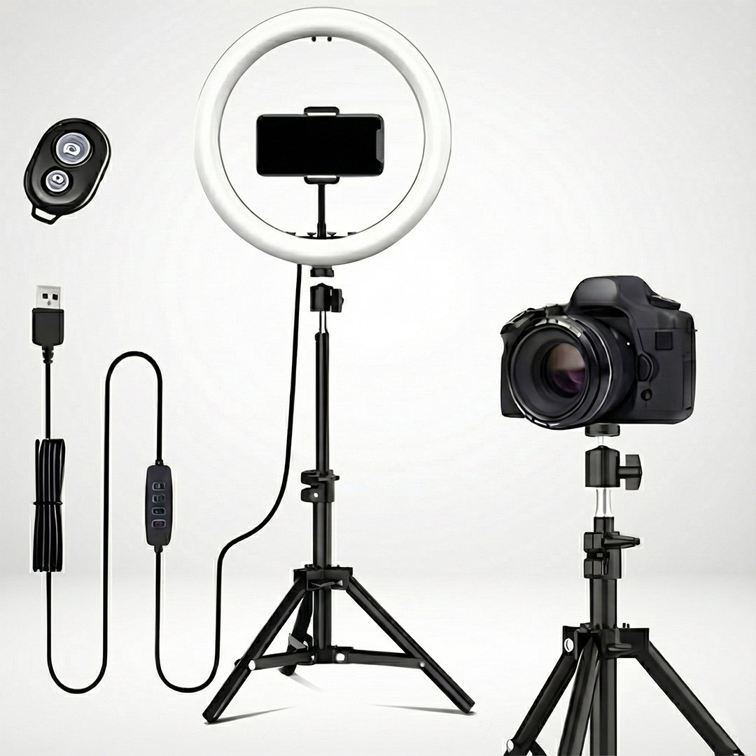 טבעת תאורה בקוטר 30 ס”מ עם 160 נורות LED, מציעה 3 מצבי אור – לבן, טבעי וחם. התאימו את עוצמת האור עם השלט הנלווה.