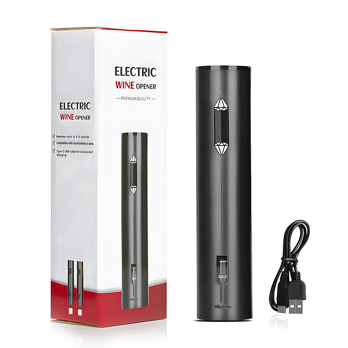 Effortlessly introduce the electric bottle opener to your kitchen and experience quick and efficient wine bottle openings. Equipped with USB