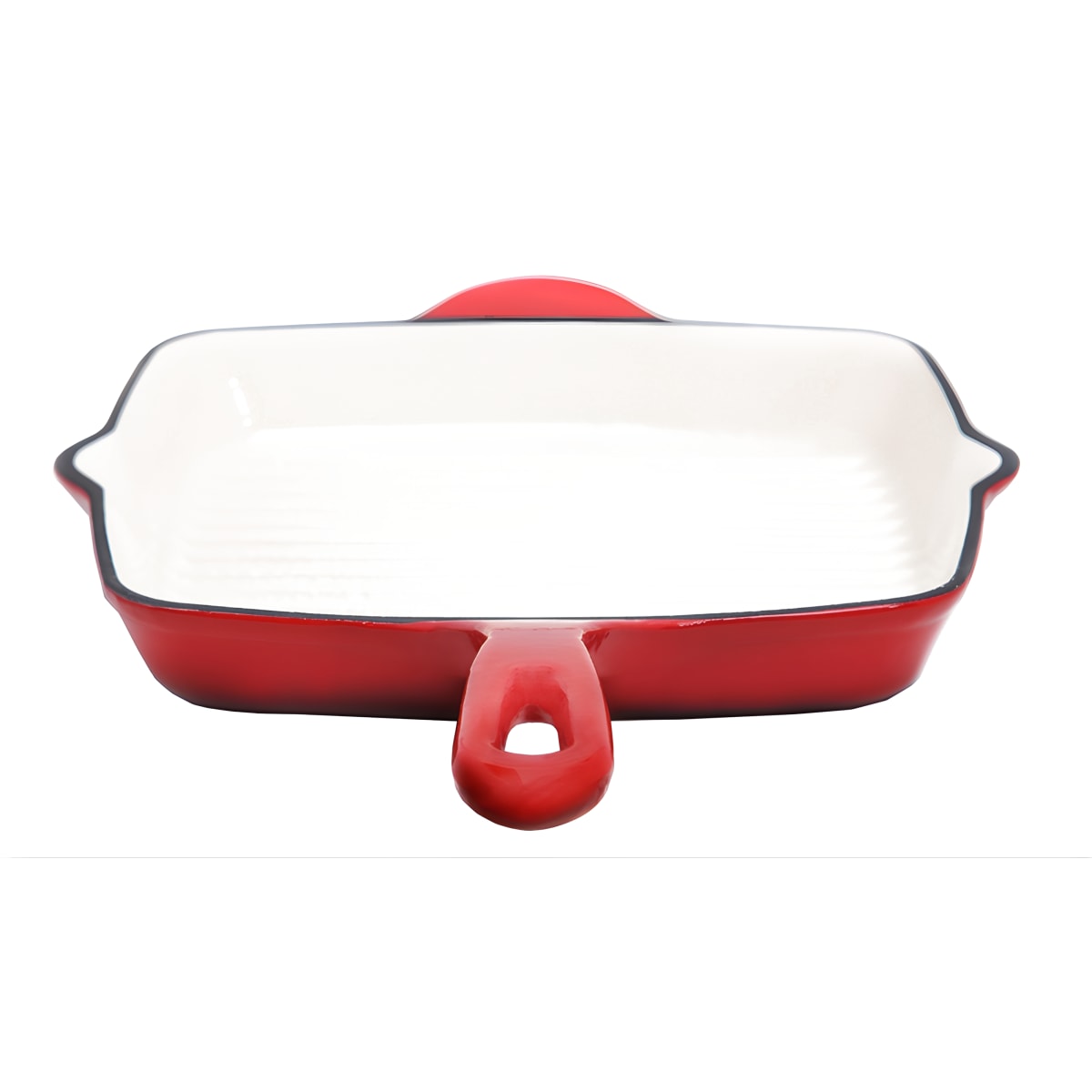 מחבת ברזל יצוק 25x25 לצלייה עם שכבת אמייל באדום