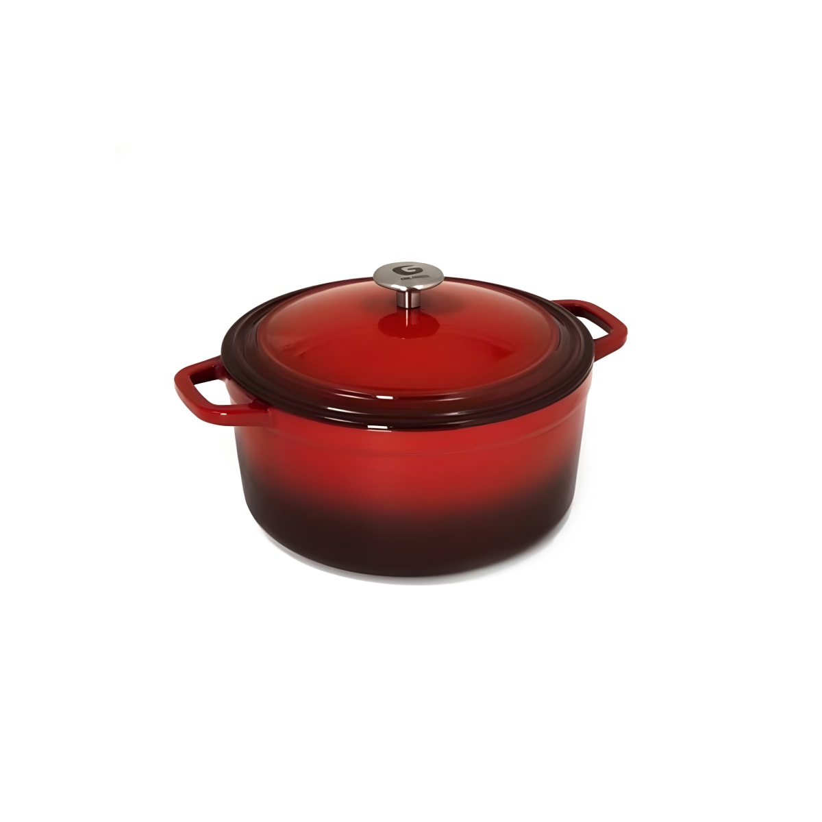 סיר אמייל יציקת ברזל עמיד בעל נפח 6 ליטר בצבע אדום מקסים. כלי הבישול שומר על חום באופן מושלם, מבטיח בישול איטי, עסיסי ואיכותי. כל סיר מצופה