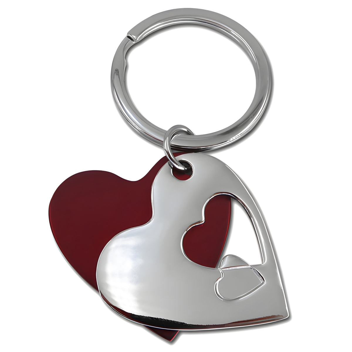 מחזיק מפתחות לב מניקל ואדום מתכתי