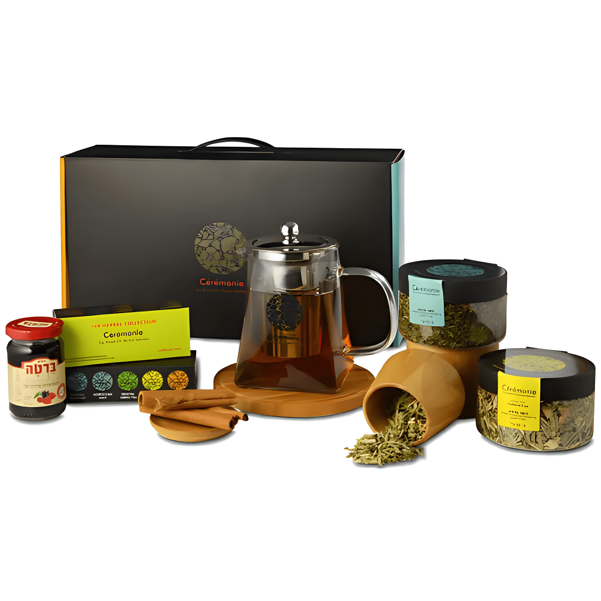 מארז שיחנית מבית סרמוני המארז מכיל: קנקן זכוכית סרמוני 750 מ"ל תפזורת בצנצנת פלסטיק מהודרת - לימונית לואיזה תפזורת בצנצנת פ