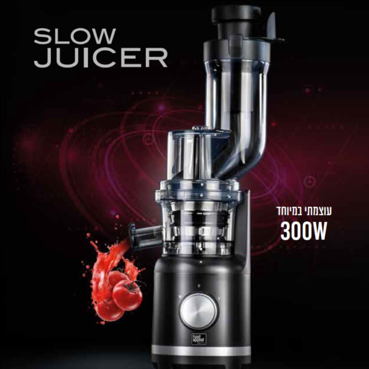 מסחטת פירות וירקות איטית עם מנגנון סחיטה במהירות נמוכה, ללא חום או שחיקה, לשימור הערכים התזונתיים של פירות וירקות.