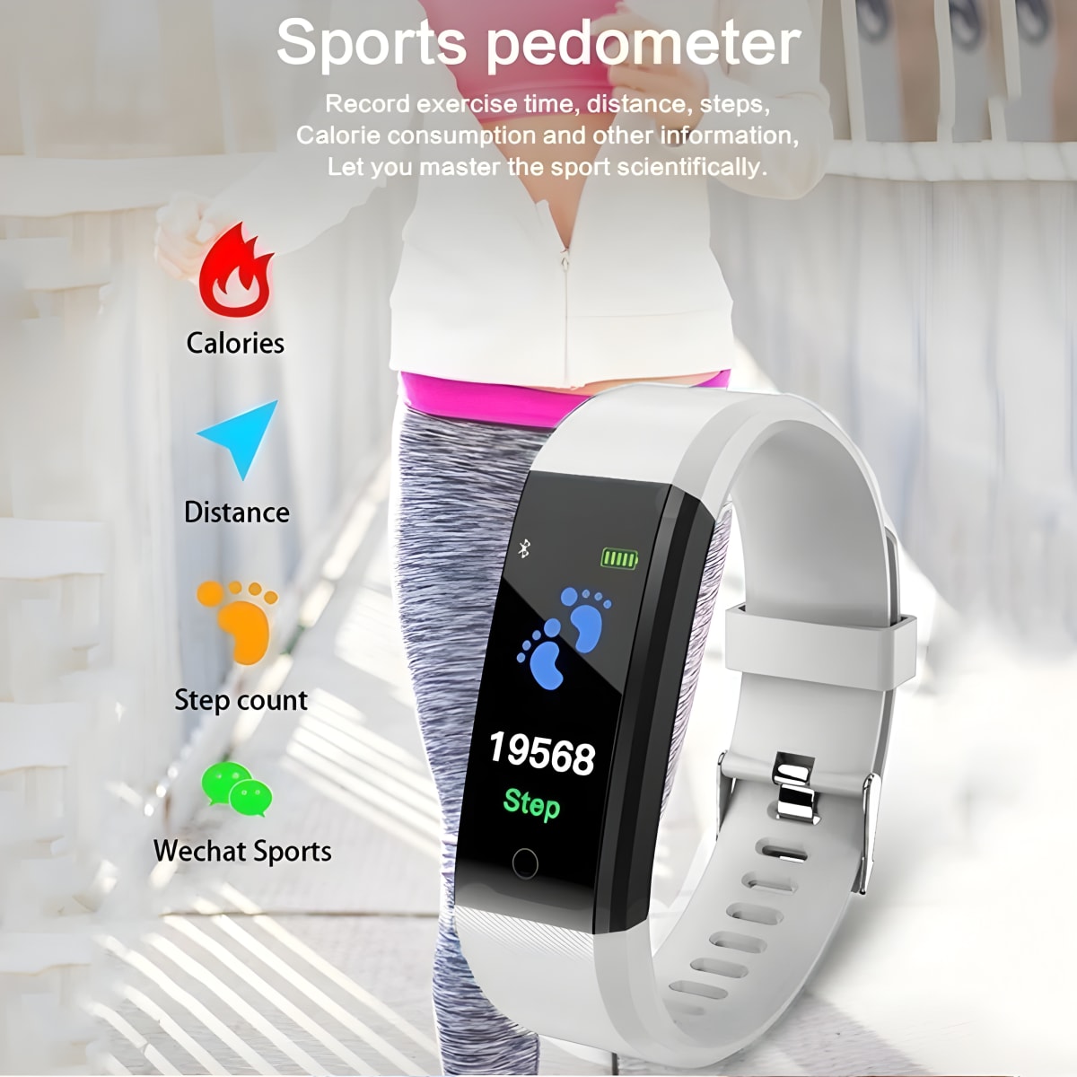 Experience advanced fitness tracking with a smart watch featuring heart rate and blood pressure monitoring, real-time notifications, and precise sleep tracking. Includes a pedometer and a vibrant 0.96-inch OLED touchscreen. Perfect for smart health management and workouts.