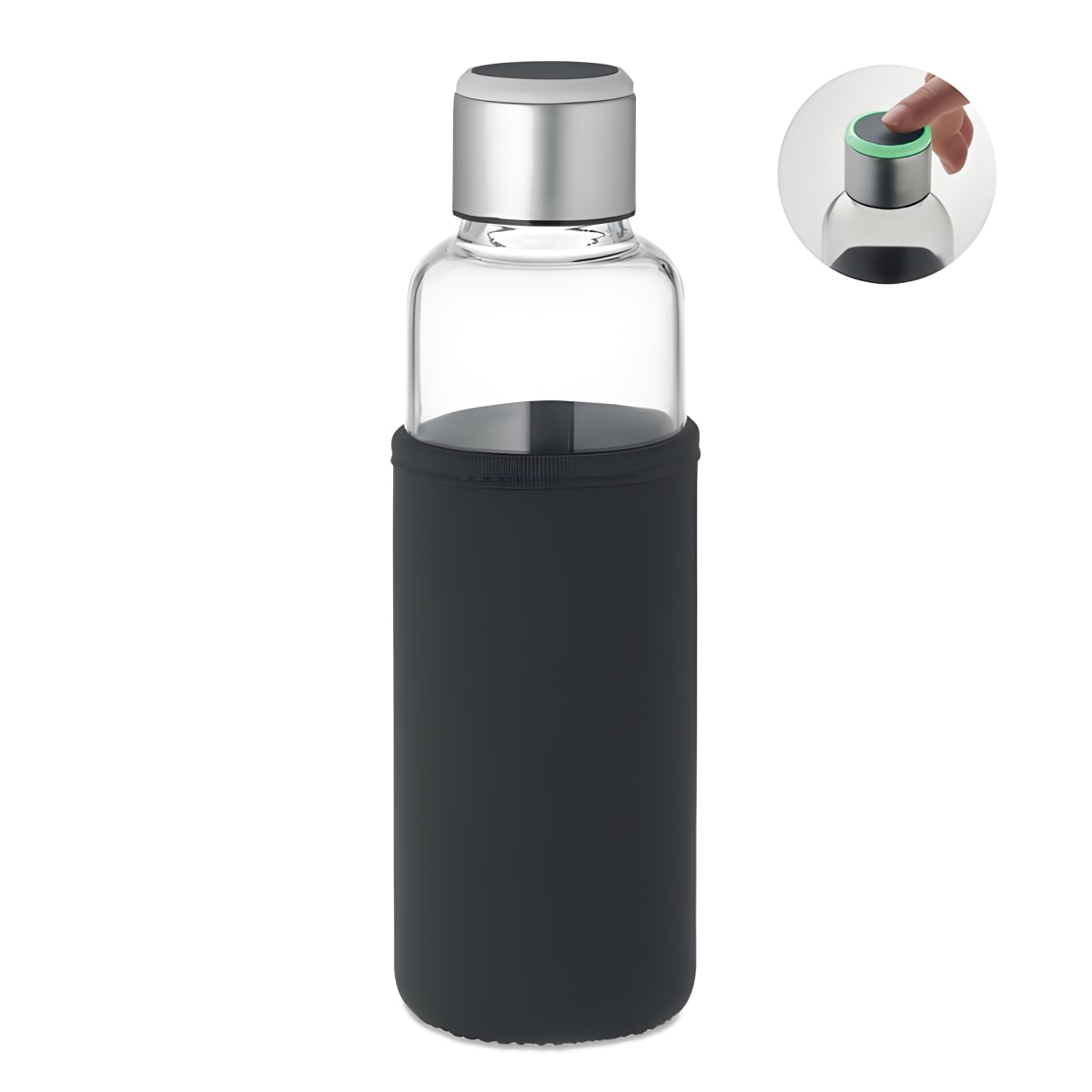 Discover the smart hydration reminder borosilicate glass bottle with a light sensor that reminds you to drink every hour! Made with stainless steel and includes a CR2032 battery. Capacity: 500 ml.