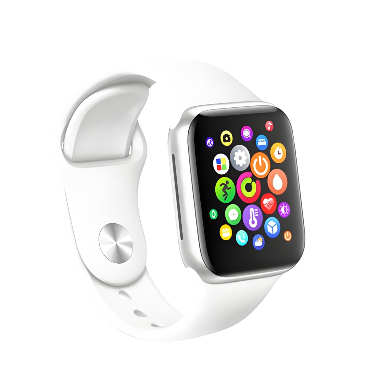 שעון חכם איכותי עם רצועה לבנה המספק מגוון פונקציות מתקדמות למעקב אחר בריאות ופעילות גופנית. תהנה מחיבוריות שוטפת לאפליקציות שונות, ניווט קל