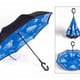 מטריה מתהפכת עם מיתוג צבעוני על פלח אחד, עמידה ואיכותית.
