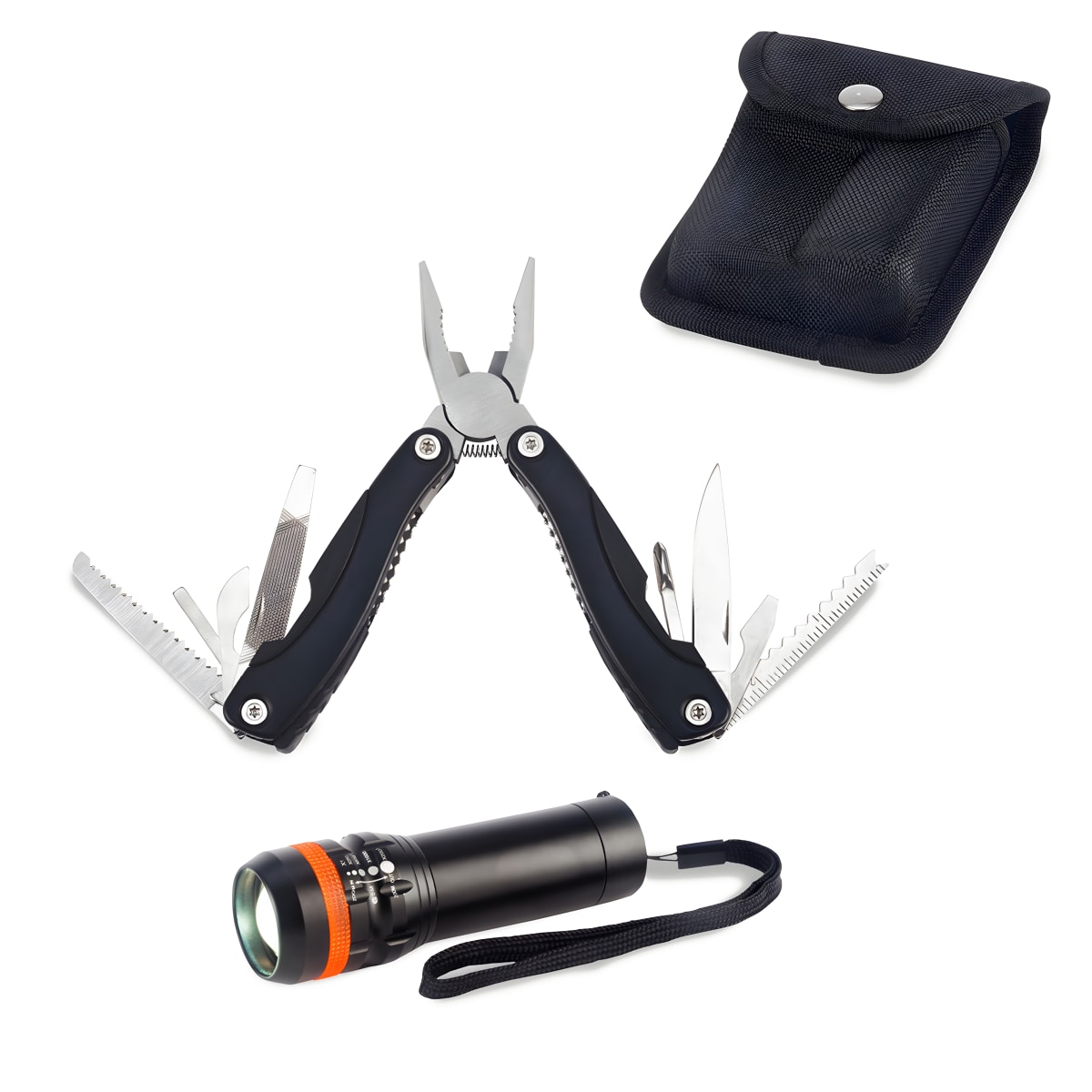 גלו את סט הכלים הרב תכליתי SQUAD FORZA – כולל פלייר ופנס בעיצוב קומפקטי וקל לנשיאה.