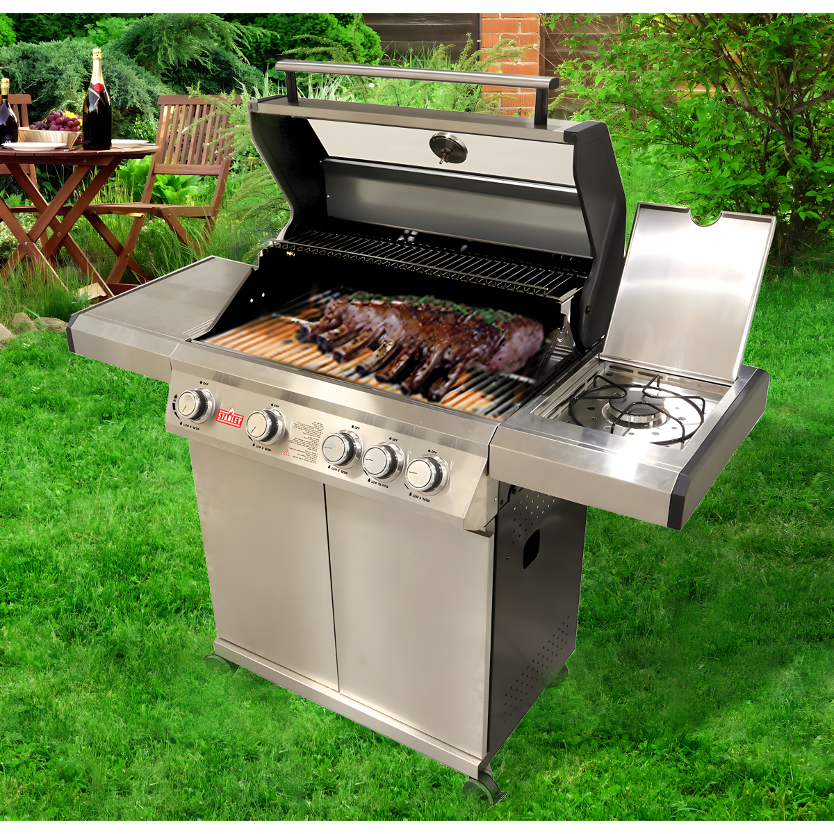 Experience perfect cooking with Stanley's gas grill, crafted from high-quality stainless steel with 3+1 burners.