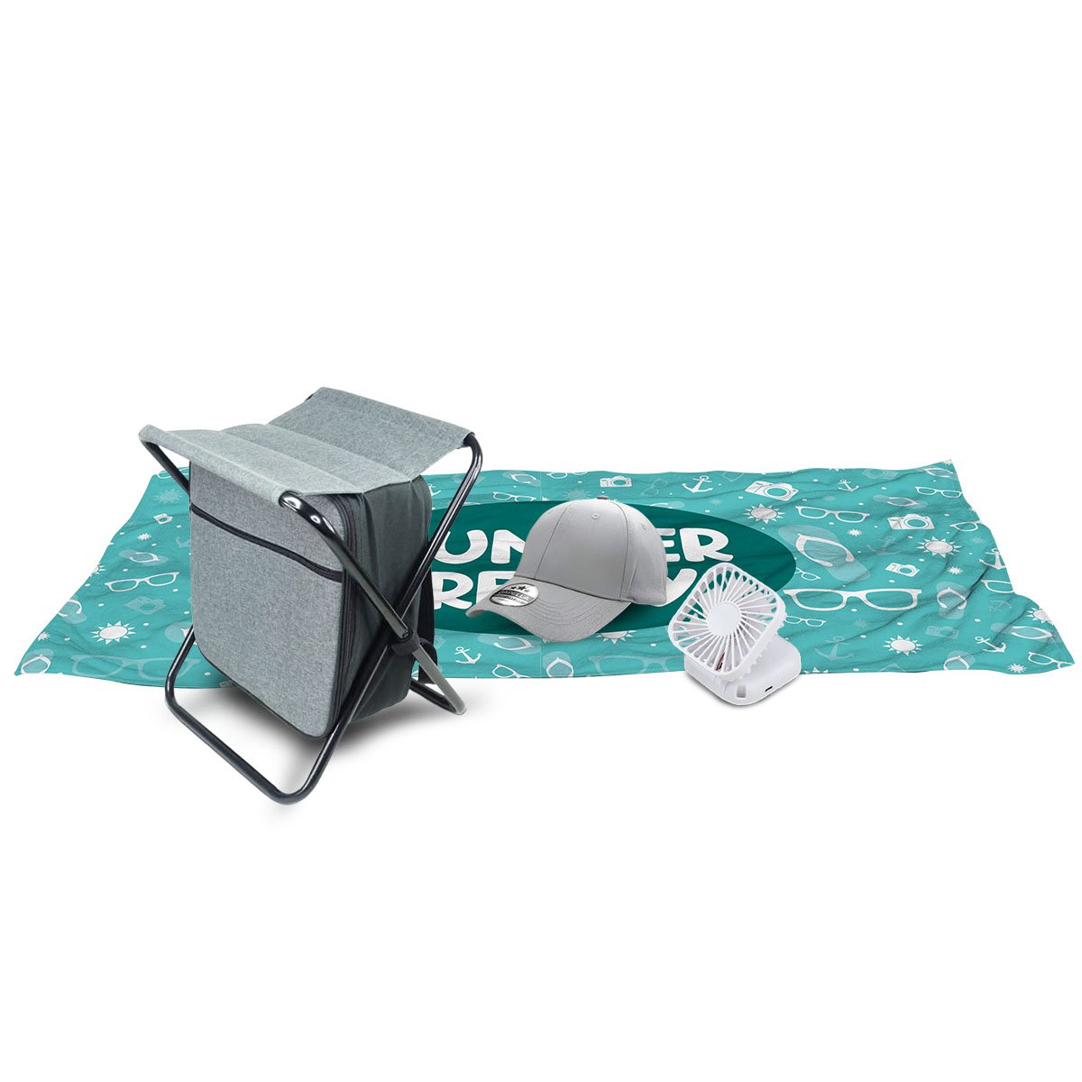 שמור על קור ורעננות עם ערכת הקיץ המושלמת הזו, הכוללת כיסא קירור מתקפל, כובע נושם, מאוורר קומפקטי ומגבת חוף צבעונית. ערכה מושלמת לימי חוף, פיקניקים או בילויים בטבע. מתנה עסקית מעולה שמביאה שמחה ופנאי לכל עובד. מתנות לעובדים עם לוגו זמינות. אל תחמיץ את ההזדמנות להפתיע את הצוות שלך!