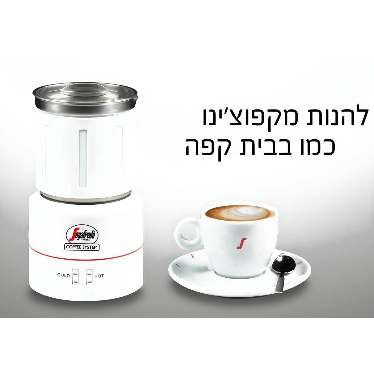 מקציף חלב סגפרדו - איכות ונוחות בהקצפהמושלם להקצפת או חימום חלב חם או קר.לחיצה פשוטה ליצירת חלב מוקצף וטעים תוך דקות.בשילוב עם אספרסו סגפרדו