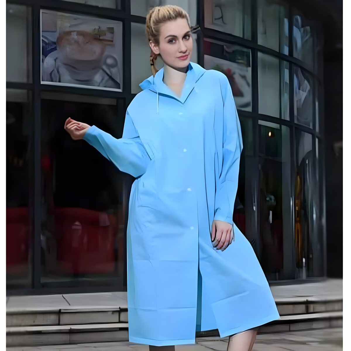 הכירו את מעיל הגשם האלגנטי המיועד למידות L-XL, צבעים אופנתיים לבחירה: תכלת וירוק. ודאו זמינות במלאי לפני רכישה.