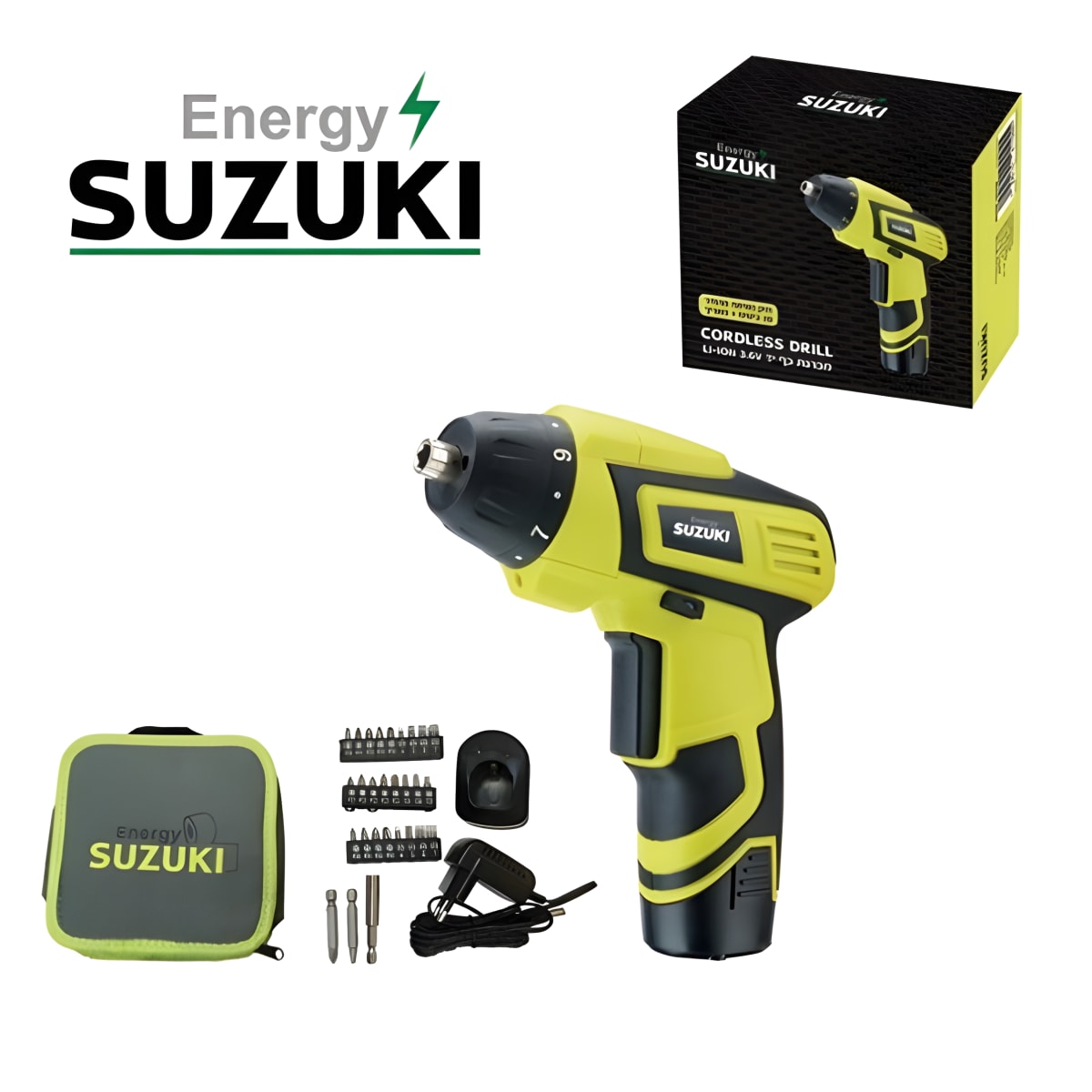 מברגה ידנית סוזוקי 3.6V עם 29 אביזרים בתיק SED36