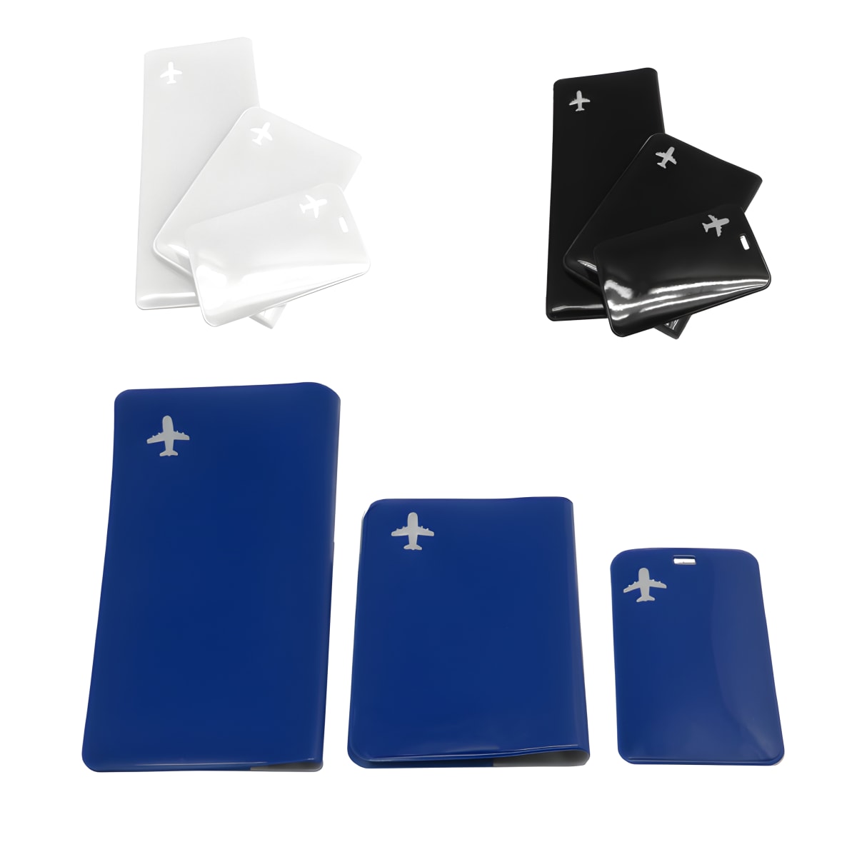 הגבוהים ביותר לטיסות עם סט נרתיקים לטיסה. עשוי שלושה חלקי PVC, הסט כולל תג שם למזוודה, נרתיק לדרכון ונרתיק לכרטיסי טיסה. ערכת חובה לכל מטייל