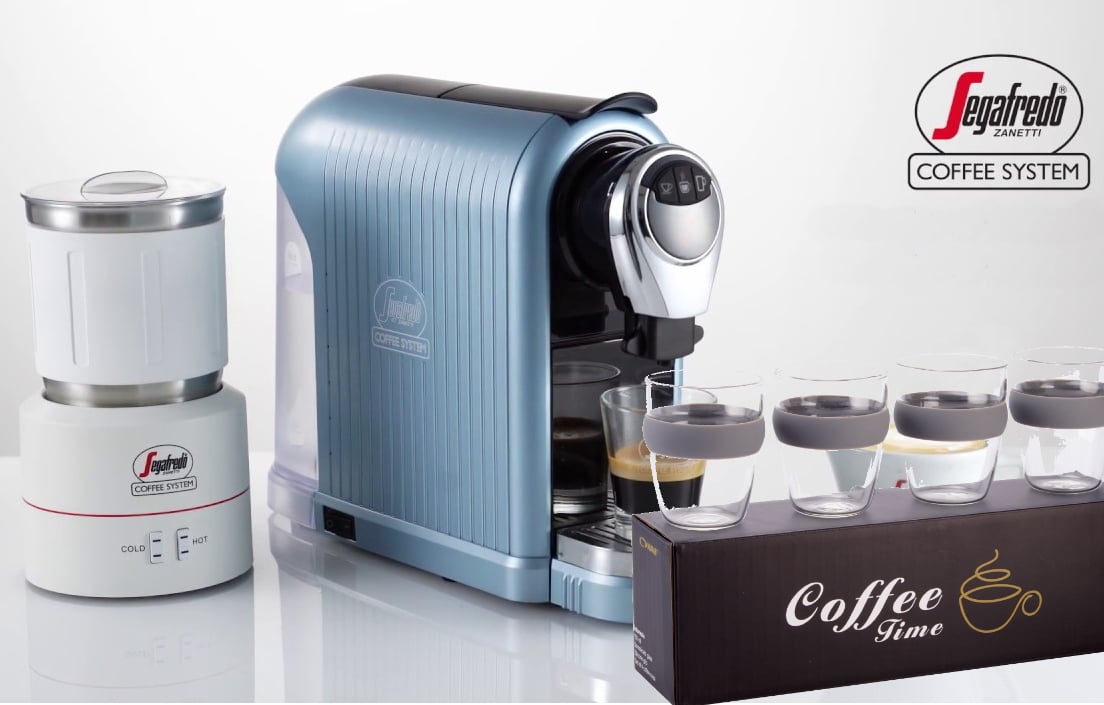מארז קפה אולטימטיבי עם מכונת אספרסו, מקציף חלב וערכת טעימות Segafredo