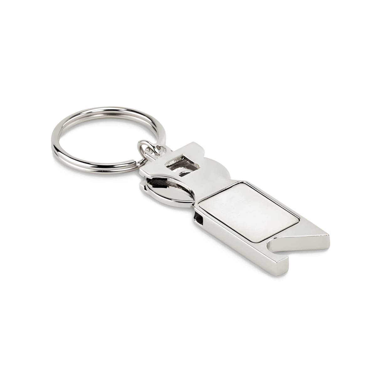 Discover our zinc alloy key ring featuring a euro token and a bottle opener. This handy accessory is perfect for attaching to your keys, mad