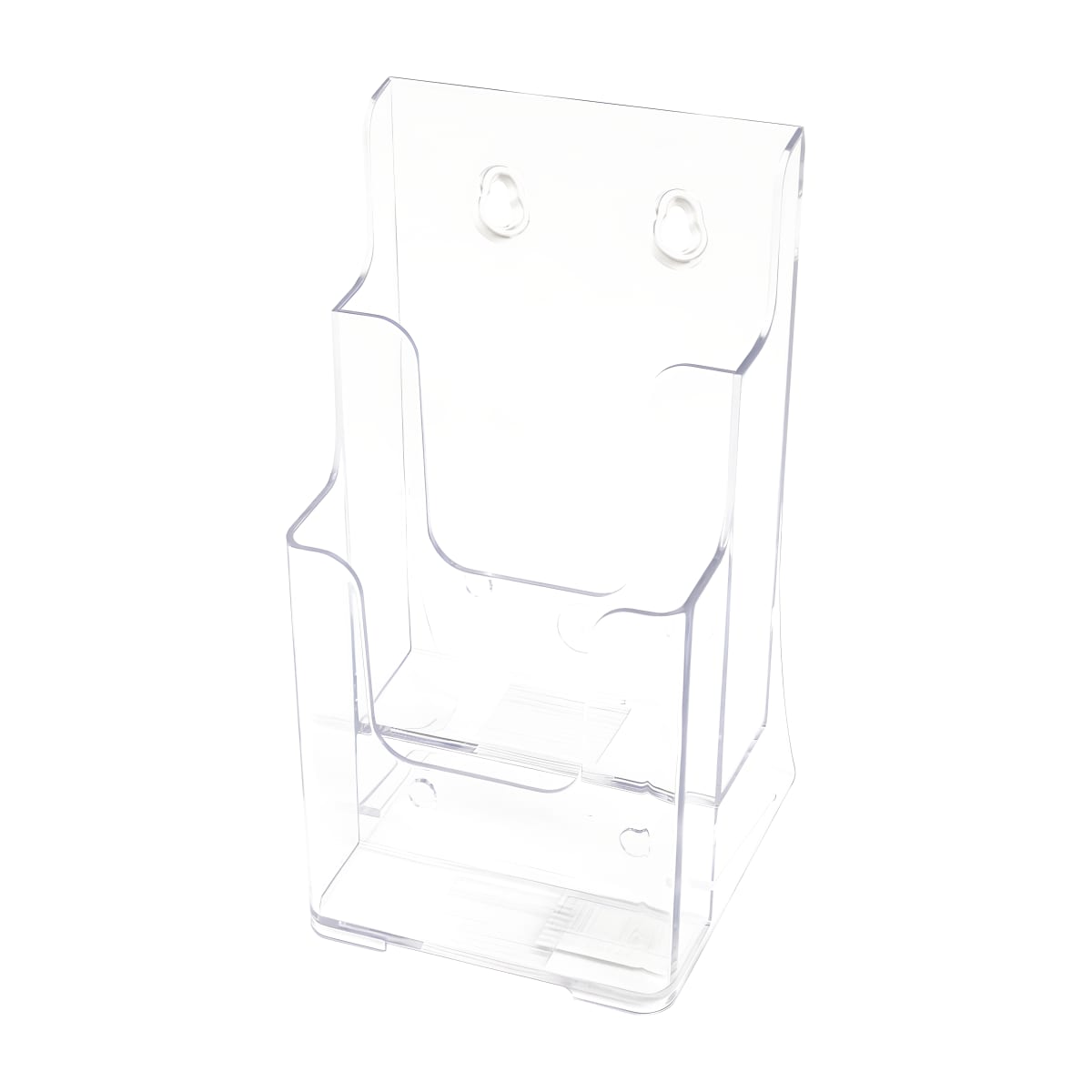 High-quality transparent catalog holder featuring two compartments for A4 documents. Ideal for hanging and presenting catalogs neatly and attractively.