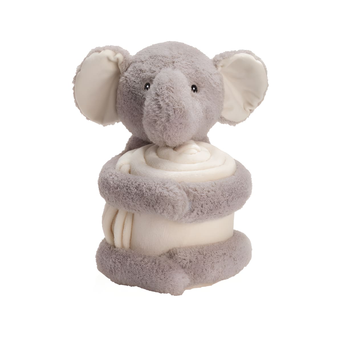 Exquisitely designed plush elephant wrapped in a snowy white winter coat, perfect as a charming shelf decor or a delightful addition to a child's room.