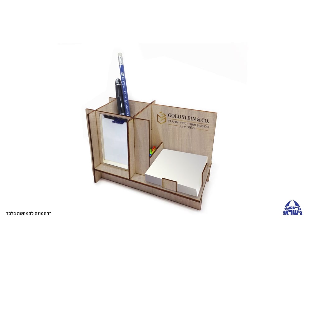 ארגונית מעוצבת עשויה עץ עם שילוב מראהכוללת נייר ממו לבן לשימוש יומיומימידות: 10X11X19 ס"ממיתוג צבעוני שמוסיף סטייל לשולחן העבודה שלך